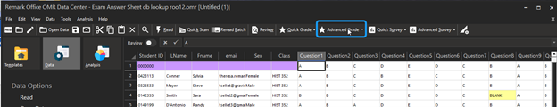 Once you have your tab-delimited file created to import, with your test data showing in the data center, select Advance Grade.